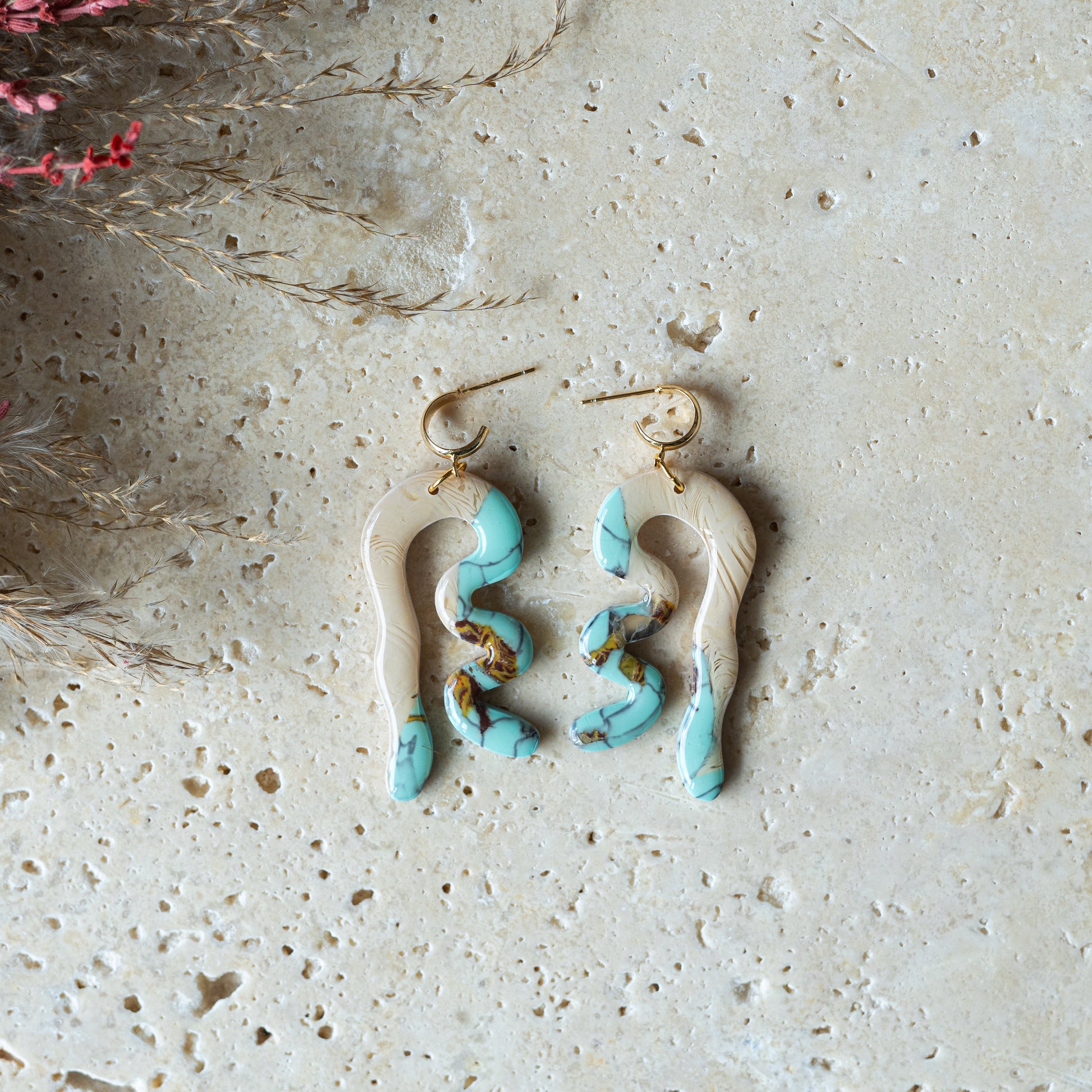 Elevate your style with our bold polymer clay turquoise gem earrings! These unique earrings were crafted from high-quality clay to mimic the beautiful hue and texture of natural turquoise. Make a statement and add a daring touch to any outfit with these must-have earrings.